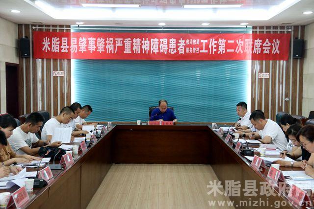 会上,卫计局、公安局、民政局、残联和各街镇汇报了工作进展情况,县委政法委副书记王兴政传达了中、省、市、县关于加强易肇事肇祸严重精神障碍患者救治救助和服务管控工作意见及以奖代补政策并安排部署了近期工作。