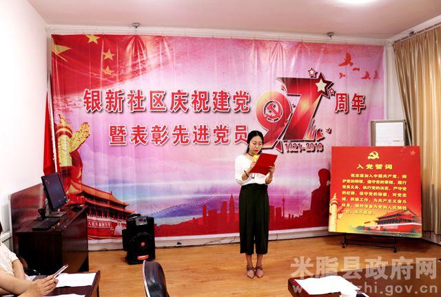 6月29日,米脂县城区便民服务中心银新社区举办了“喜迎建党97周年暨表彰先进党员”主题活动。社区全体党员干部及在家社区党员参加了本次活动。